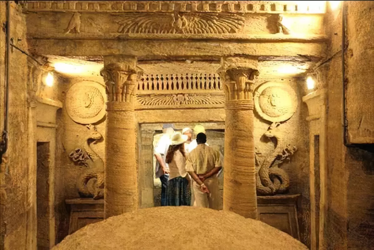 • 🏺 Catacombs of Kom El Shoqafa Explore a blend of Egyptian mysticism and Roman design in this 2nd-century AD necropolis. Spiral into subterranean corridors, banquet halls, and the eerie Hall of Caracalla.